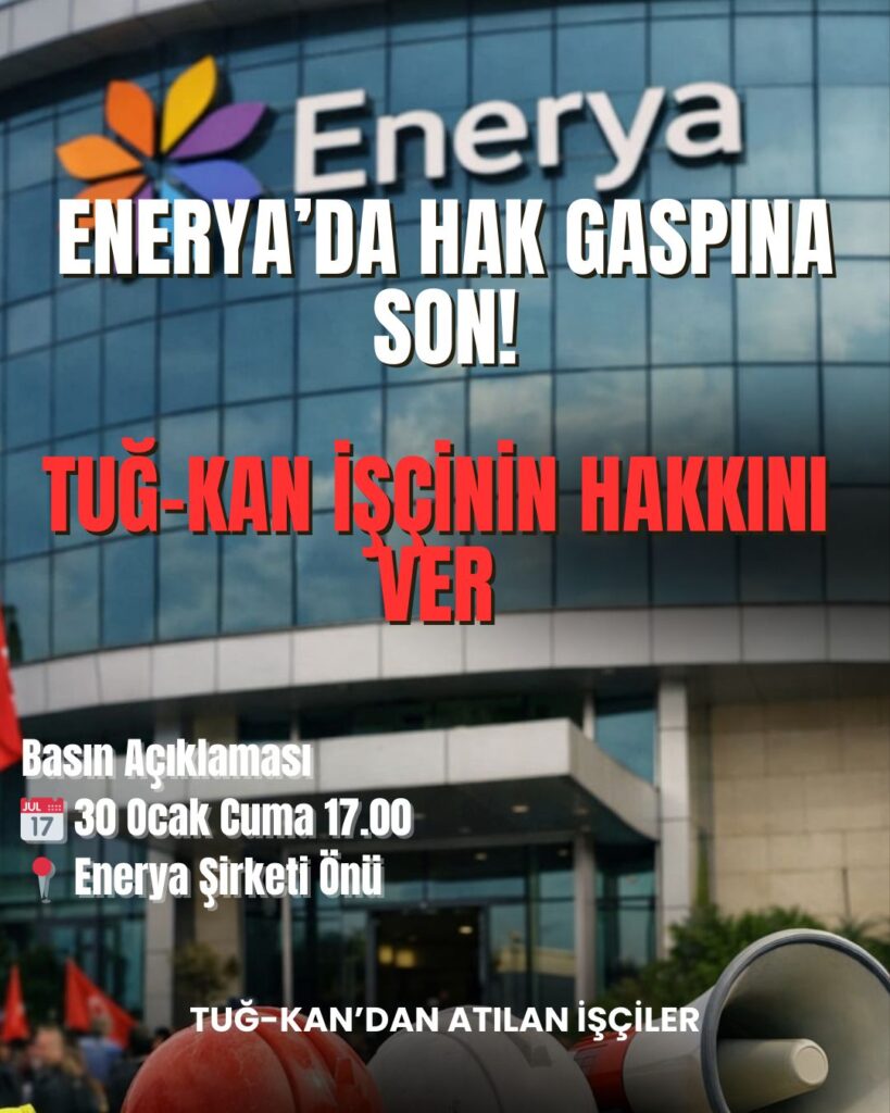 İşten çıkarılan enerji işçileri Enerya önünde basın açıklaması gerçekleştirdi; “Haklarımız gasp ediliyor, Can güvenliğimiz yok”